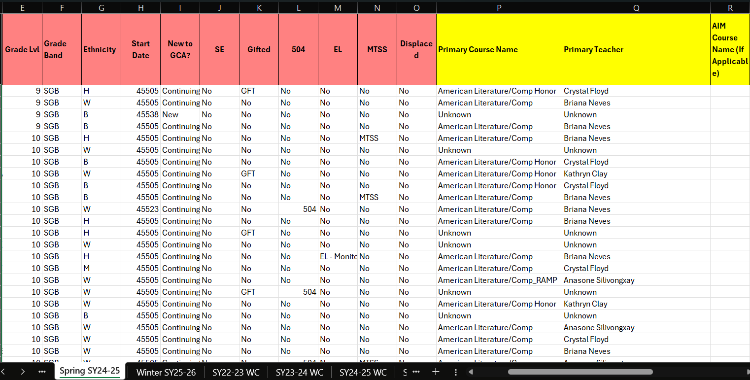 Teacher names, course labels, and assessment structures varied across school years and data sources. Without careful validation and standardization, these inconsistencies introduced significant risk of inaccurate comparisons over time.
